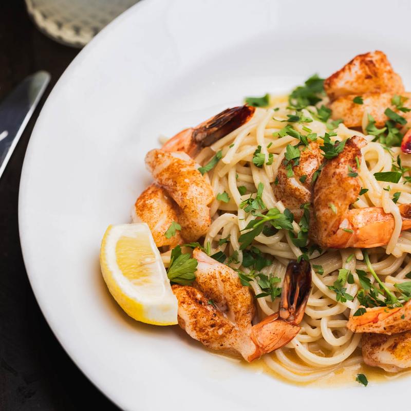 Shrimp and calamari fra diavlo Over squid ink fettuccini